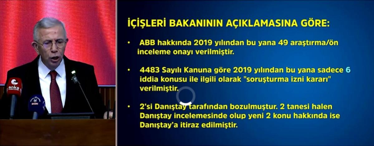 İçişleri Bakanlığı'nın Ankara Büyükşehir Belediye Başkanı Mansur Yavaş hakkında soruşturma izni vermesi gündeme damga vurmuştu. Yavaş gündemdeki gelişmeye ilişkin basın toplantısı düzenliyor.