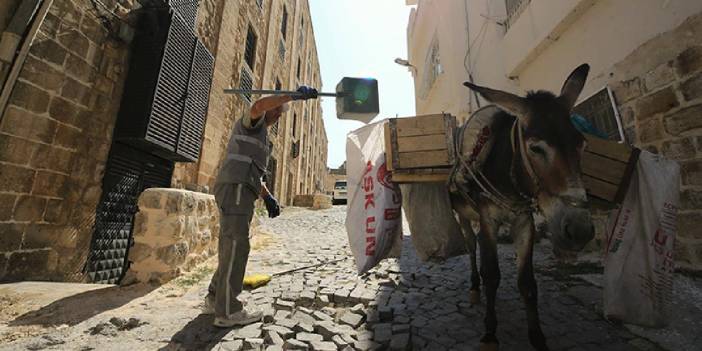 Güneydoğu Anadolu Bölgesi'nin en önemli turizm merkezlerinden biri olan Mardin'in araç girmeyen dar ve merdivenli sokaklarındaki çöpler, yıllardır Artuklu Belediyesi'nin kadrolu eşekleri kullanılarak toplanıyor.