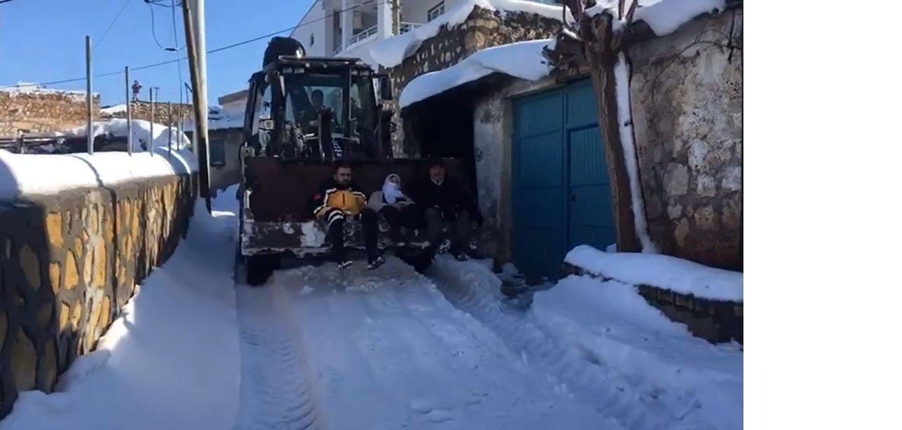 Mardin de kar esareti! Hasta kadın ambulansa kepçeyle taşındı