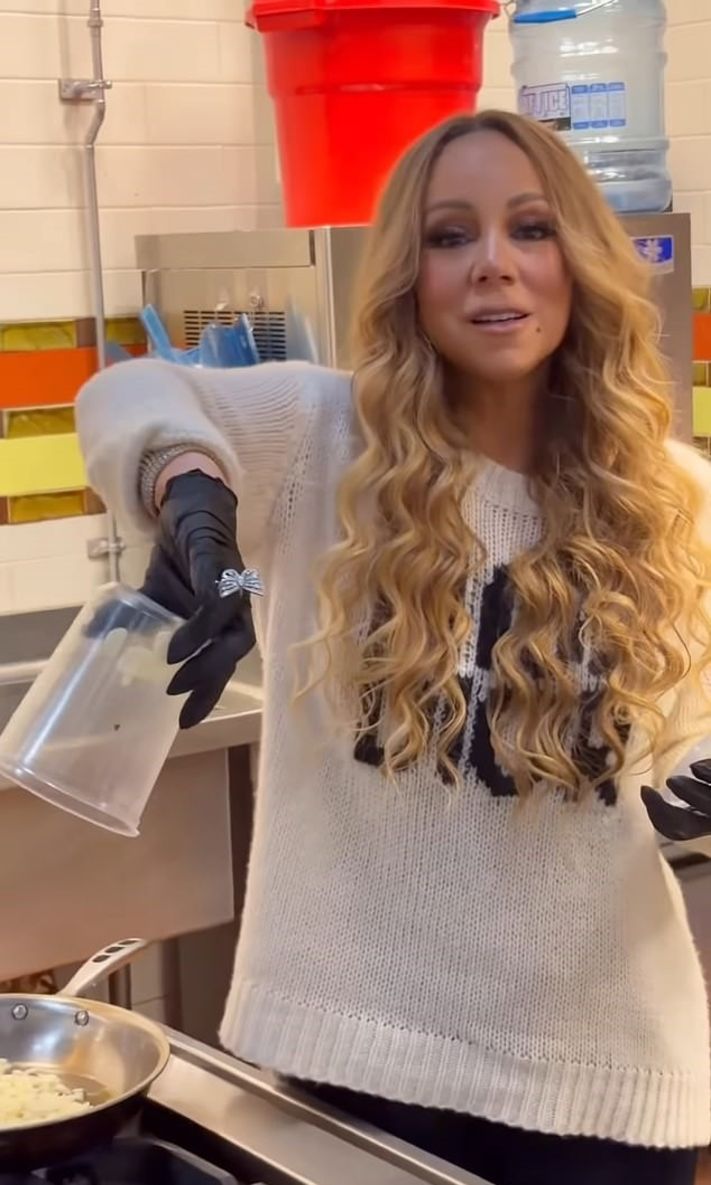 Beş Grammy ödüllü Mariah Carey, mutfakta yemek yaparken serbest bıraktığı yapılı saçlarının yanı sıra ellerinin görüntüsüyle dikkat çekti.