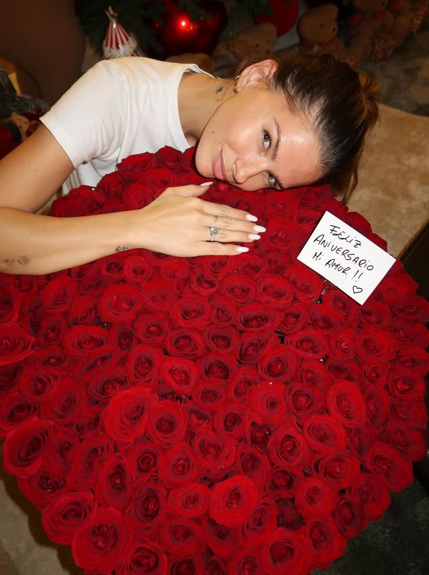Ünlü futbolcu, nişanlısına büyük bir tektaş yüzük ve yaklaşık 200 gülden oluşan bir aranjman hediye etti. Icardi, sürprizine "Mutlu yıl dönümleri aşkım" notunu ekledi.