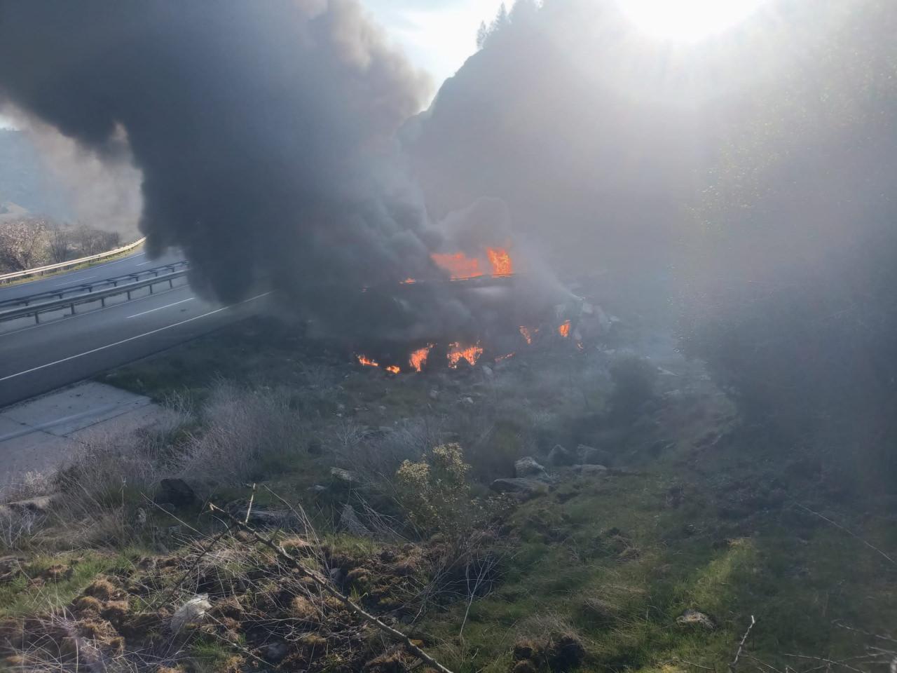 Mazot dolu tanker devrilip yandı! Sürücü feci şekilde can verdi