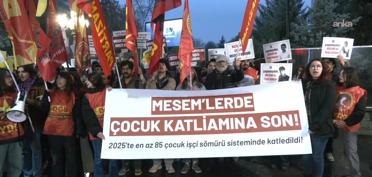 MEB ÖNÜNDE MESEM PROTESTOSUMEB önünde yapılan ve 2025 yılında 91 çocuğun çalışırken yaşamını yitirdiğinin söylendiği açıklamada, Dilovası’ndaki bir fabrikada yanarak hayatını kaybeden işçilerden ikisinin çocuk olduğu, son olarak 16 yaşındaki MESEM’li Alperen’in çalıştığı fabrikanın üçüncü katından düşerek yaşamını yitirdiği hatırlatıldı.