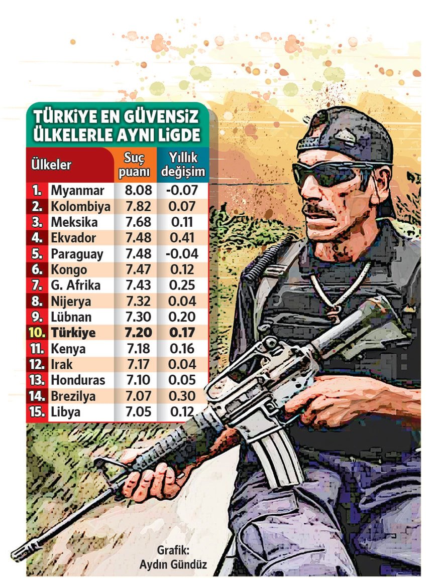 Türkiye’de vatandaşlar, hemen her sabaha yeni bir suç örgütünün adı ve yeni eylemi ile uyanmaya başladı. Durum öyle bir hale geldi ki global araştırma raporlarında Türkiye artık ‘en suçlu’ ülkeler liginde ilk 10’a girdi. Geçen hafta açıklanan 2025 ‘Küresel Organize Suç Endeksi’ raporuna göre Türkiye, 193 ülke arasında Kolombiya ve Meksika gibi ülkelerin ardından 10’uncu sırada yer aldı.