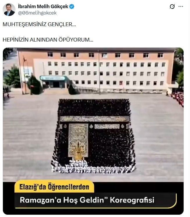 Sosyal medyada dolaşıma giren “öğrencilerin Ramazan koreografisi” başlıklı yapay zeka videosu, eski Ankara Büyükşehir Belediye Başkanı Melih Gökçek’i de yanılttı. Gerçek olmadığı kısa sürede anlaşılan görüntülere inanan Gökçek, videodaki gençleri tebrik etti.