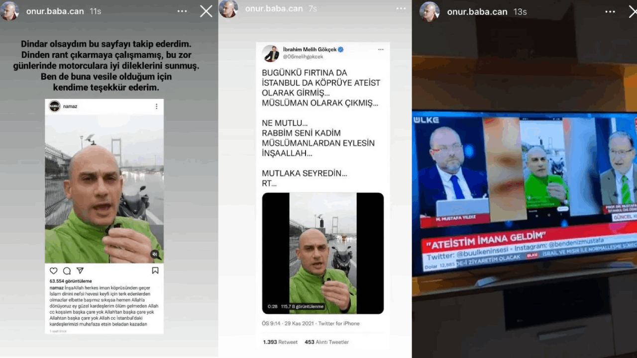 Melih Gökçek, ironik videolarıyla tanınan sosyal medya fenomeni Onur Babacan'ın "Köprüye ateist girdim Müslüman çıktım" dediği 'fırtına' videosunu gerçek sanmıştı.