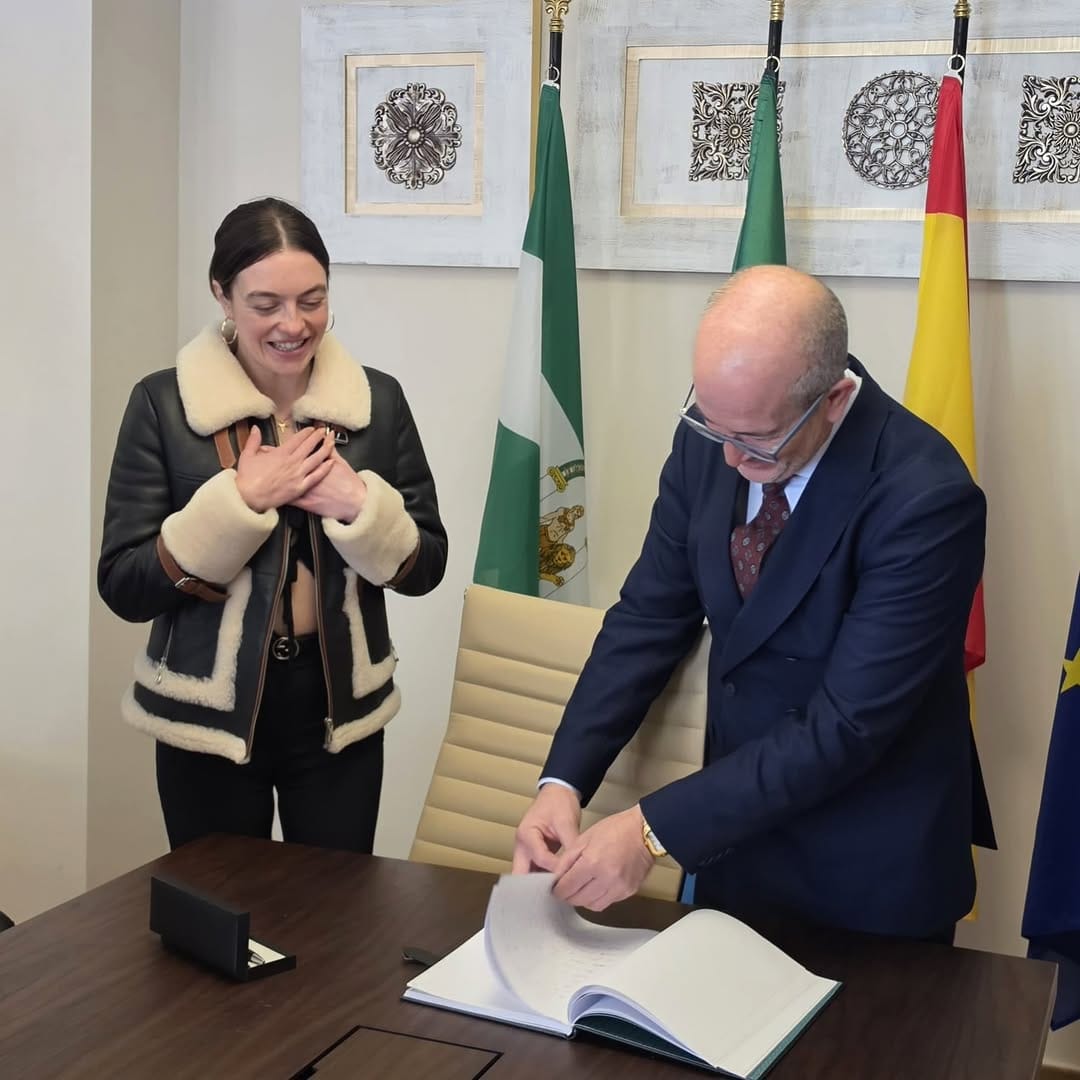 Melis Sezen i İspanya da belediye başkanı karşıladı: İmzayı attı