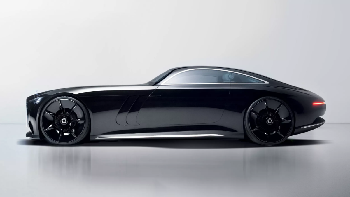 Profil, 2016 ve 2017 Vision Mercedes-Maybach 6 Coupé ve Cabriolet konseptlerini anımsatıyor, ancak çıkıntılar daha kısa. Uzun kaput, çamurluklardaki yan çıtalarla vurgulanarak kısa ön camın çizgilerini sürdürüyor. Eğimli tavan çizgisi, ikonik 300 SL Gullwing'e açık bir gönderme yapan kavisli kuyruğa uzanıyor.