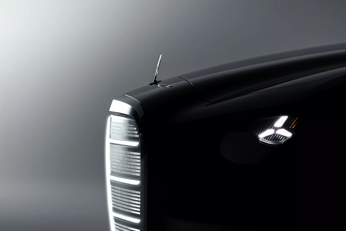 İlk olarak GLC EV serisinde görülen "İkonik Izgara", yıldızlar doğru hizalandığında büyük ve aydınlatılmış bir panelin araçta güzel görünebileceğini kanıtlıyor. Konseptin şekli W108, W111 ve 600 Pullman gibi klasiklerden esinlenmiş, ancak burada Mercedes'in klasik kaput süsü ve agresif farlarla birleştirilmiş.