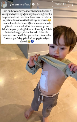 Şefkatli, kazayı şu sözlerle anlattı: “Ayağım kayınca merdivenden düştüm, o sırada çocuk güvenlik kapısının demirine çarpıp Ayel’in karnında hafif bir sıyrık oluştu. Hareket edemeyince ambulansla hastaneye gitmek zorunda kaldık.”