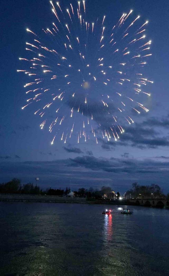Akşam saatlerinde düzenlenen havai fişek gösterileriyle gökyüzü aydınlanırken, nehir üzerindeki görsel şölen izleyenlere unutulmaz anlar yaşattı.