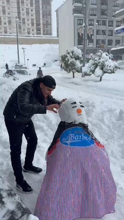 Meslek aşkı peşini bırakmadı! Kardan adamı da tıraş etti Sözcü Gazetesi