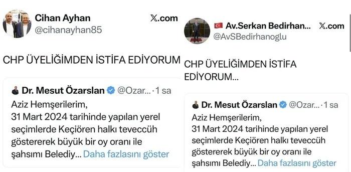 Özarslan'ın ardından CHP’li Meclis Üyeleri Serkan Bedirhanoğlu, Cihan Ayhan ve Azra Ceylan Öztürk de partilerinden istifa ettiklerini açıkladı.