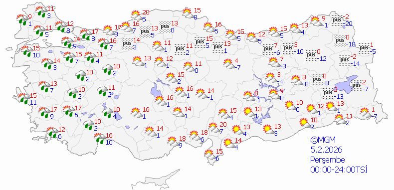 Perşembe günü Türkiye'de hiçbir ilde kar yağışı beklenmiyor. Ancak Batı Marmara ile Ege Bölgesi'nin tamamında ve Akdeniz'in bazı illerinde sağanak yağmur etkili olacak.