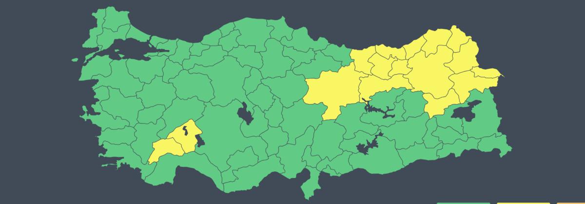 ÇIĞ TEHLİKESİ UYARISI: Doğu Karadeniz’in iç kesimlerinin yüksekleri ile Doğu Anadolu’nun doğusunun yüksek kar örtüsüne sahip eğimli kesimlerinde çığ tehlikesi bulunmaktadır.