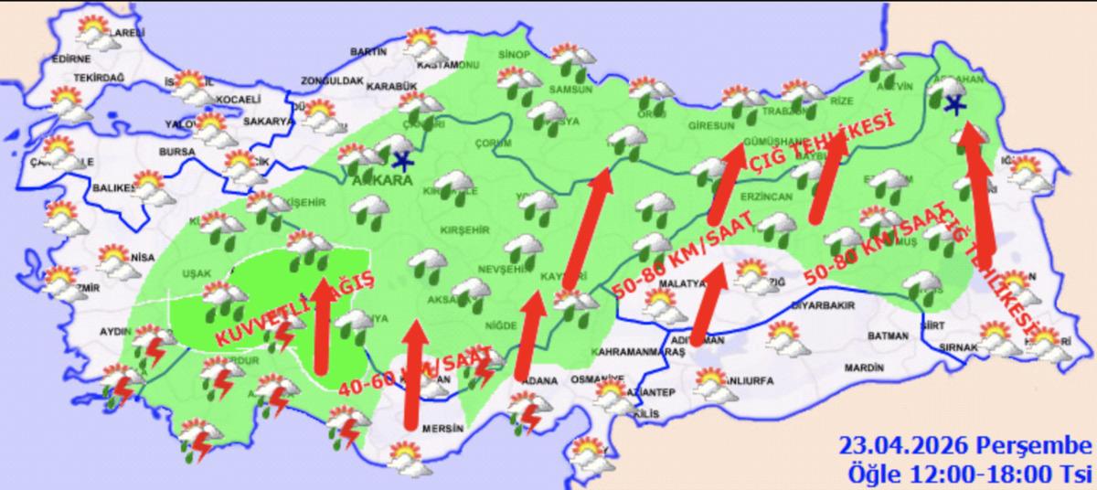 Ayrıca Doğu Karadeniz ve Doğu Anadolu’nun yüksek kesimlerinde çığ ve kar erimesi riskine dikkat çekildi.