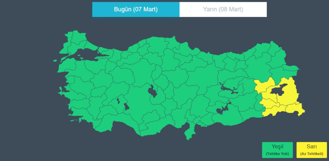 Uyarı yapılan 6 il arasında Bitlis, Hakkari, Muş, Siirt, Van ve Şırnak yer aldı.