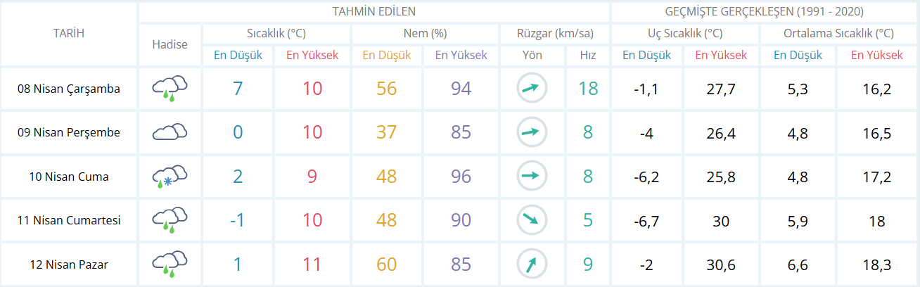 Doğu kesimlerdeki yağışların yer yer de kar yağışına döneceğini dile getiren Macit, yağışların çarşamba ve perşembe günü Erzurum ve Ardahan'da yer yer kuvvetli olacağını söyledi.