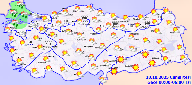 BATI KARADENİZParçalı çok bulutlu, Sinop çevrelerinin bu sabah saatlerinde sağanak yağışlı geçeceği tahmin ediliyor. Bölgenin iç kesimlerinde pus ve yer yer sis hadisesi bekleniyor.
