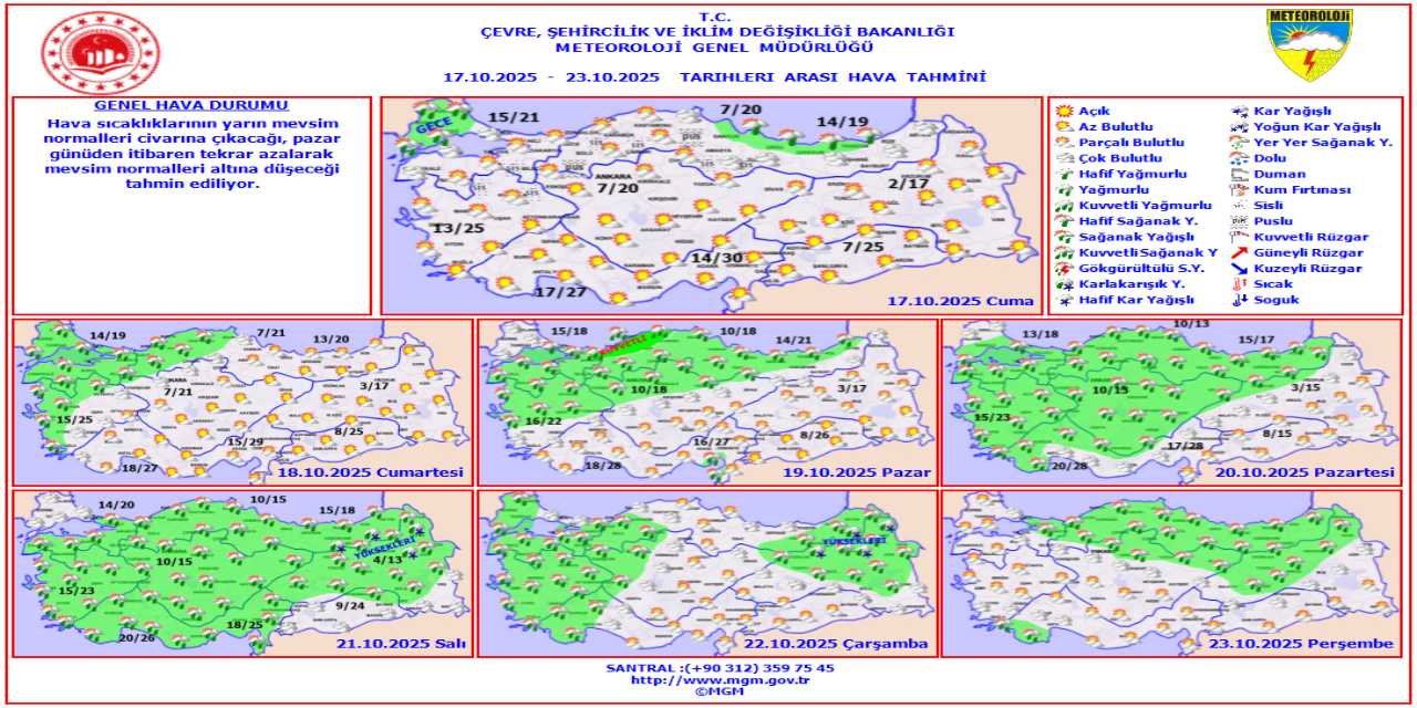 Hava sıcaklıklarının yarın da mevsim normalleri civarına çıkacağı ancak pazar gününden itibaren tekrar azalarak mevsim normalleri altına düşeceği tahmin ediliyor.