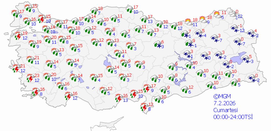 Parçalı ve çok bulutlu, Doğu Karadeniz kıyıları ile Ordu ve Artvin çevrelerinin yağışlı geçeceği tahmin ediliyor. Yağışların, kıyılarda yağmur ve sağanak, iç kesimlerde karla karışık yağmur ve kar şeklinde olması bekleniyor. Doğu Karadeniz'in iç kesimlerde buzlanma ve don olayı bekleniyor. Doğu Karadeniz'in iç kesimlerinde yüksek kar örtüsüne sahip eğimli alanlarda çığ tehlikesi bulunmaktadır.