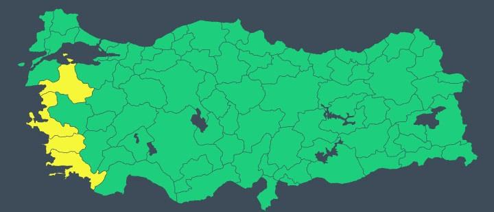 4 İL İÇİN SARI KODLU UYARIKuvvetli yağışlar nedeniyle Aydın, Balıkesir, İzmir ve Muğla için sarı kodlu uyarı verildi.