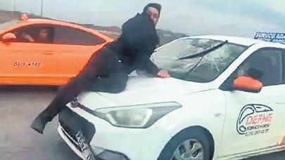 Üstelik bunu yapan, sürüş eğitmeni emekli bir polis! Darp edilen vatandaşın arabanın kaputuna yapışması ve hiç bırakmaması da ayrı bir delilik! Ya sürücü ani frene bassaydı!
