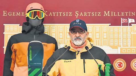 AK Partili Murat Cahid Cıngı, Meclis'te kış turizmine dikkat çekmek amacıyla kayak kıyafetleri ve kayak takımlarıyla basın toplantısı düzenledi.