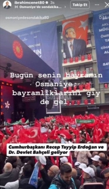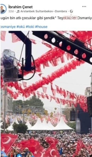 Türkiye'yi sarsan 6 Şubat depremlerinin üçüncü yılı nedeniyle önceki gün AKP’li Cumhurbaşkanı Recep Tayyip Erdoğan ve MHP lideri Devlet Bahçeli Osmaniye’yi ziyaret etti. Osmaniye Belediye Başkanı İbrahim Çenet, sosyal medya hesabından hemşehrilerini buluşmaya davet etti.