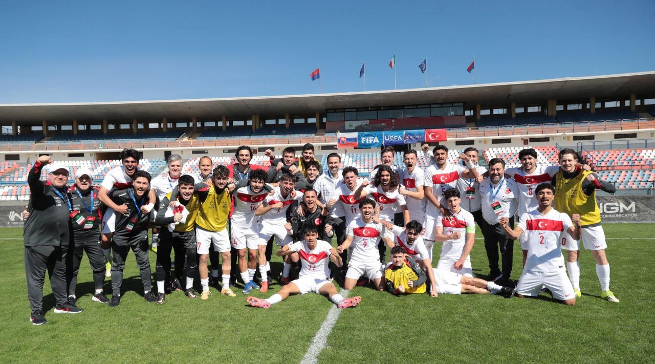 Türkiye Futbol Federasyonundan (TFF) yapılan açıklamaya göre İtalya'nın Cosenza şehrindeki Comunale San Vito Stadı'nda oynanan mücadelede milliler, 39. dakikada Berkay Aslan'ın golüyle 1-0 öne geçti. Müsabakada başka gol olmazken ay-yıldızlı takım, sahadan galibiyetle ayrılan taraf oldu.