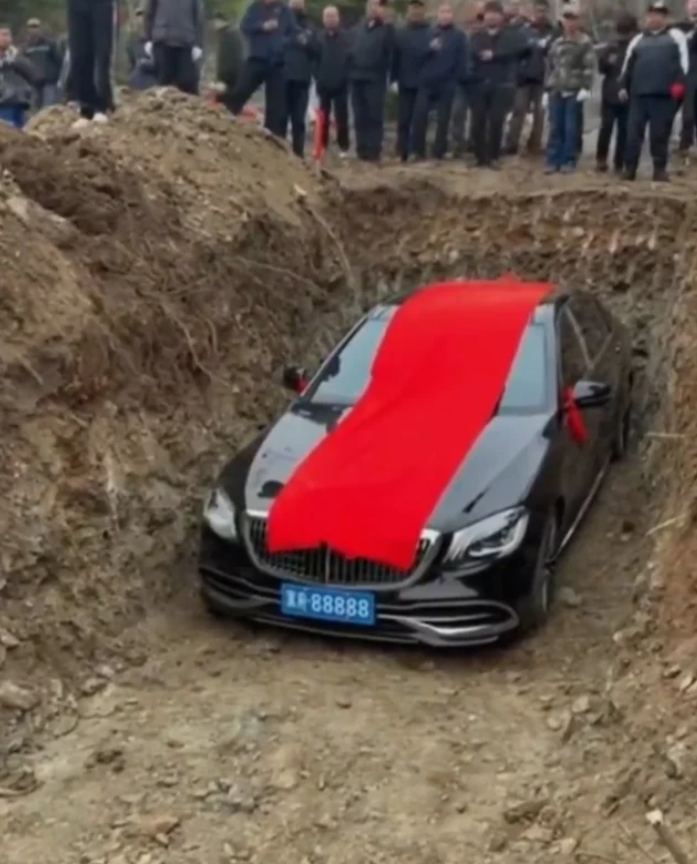 Çin’in Liaoning eyaletine bağlı Liaoyang kentinde kaydedilen görüntüler, kısa sürede sosyal medyada yayılarak büyük yankı uyandırdı. Çin basınında yer alan haberler ve paylaşılan videolarda, '8888' plakalı siyah renkli bir lüks otomobilin, ekskavatörle açılan çukura indirildiği ve bir mezarın yanına gömüldüğü görüldü.