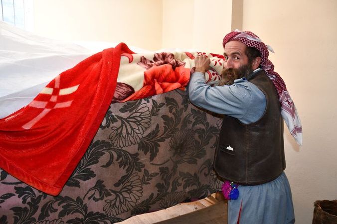 Kapı ve pencereleri kapatıp demir parmaklı bir pencereyi açık bırakan Kemal Diril, bal arılarının üzerini battaniye ve ardından çadırla kapattıktan sonra arıları kışlağa bıraktı.