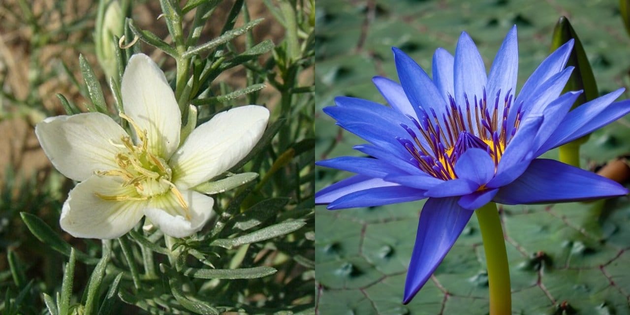 Suriye sedef otu (sol), Mavi nilüfer (sağ)