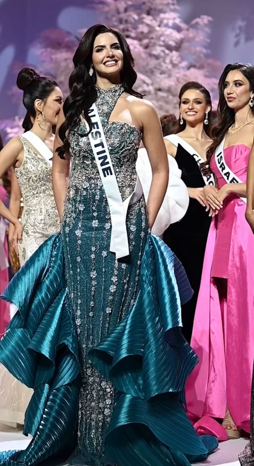 Bu yılki yarışma, tarihe geçecek bir ilke de sahne oldu. İsrail saldırıları altında bulunan Filistin’i temsil eden Nadin Ayoub, Miss Universe sahnesine çıkan ilk Filistinli yarışmacı olarak dikkat çekti.