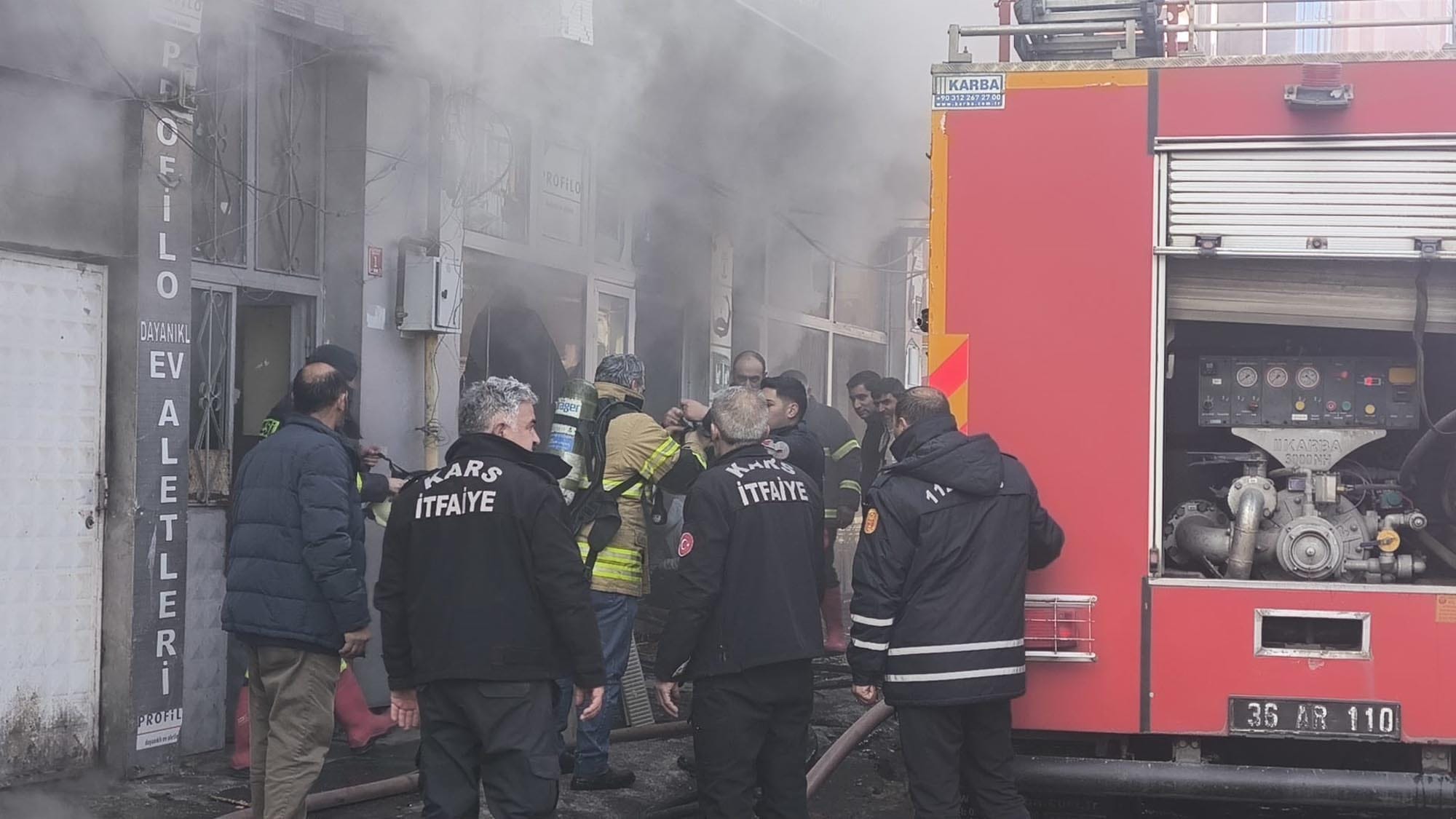 Kars’ın Kaleçi Mahallesi’nde bulunan Dr. Cengiz Askeran Caddesi’ndeki 3 katlı binanın alt katındaki mobilya deposunda, saat 14.00 sıralarında yangın çıktı. Üst katları boş olan binanın alt katındaki depoda henüz belirlenemeyen nedenle çıkan yangında, ahşap ve sünger malzemelerin tutuşmasıyla alevler kısa süre içerisinde büyüdü.