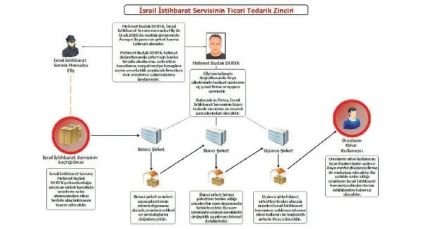 Geçtiğimiz günlerde MİT'in kelime anlamı 'son uyarı' olan 'Monitum' operasyonuyla gözaltına alınan ve tutuklanan iki şüpheli hakkında savcılığın hazırladığı sevk yazısına SABAH ulaştı. Yazıya göre, şüpheli Mehmet Budak Derya'nın kendisini Avusturya merkezli bir şirketin yetkilisi olarak tanıtan Arap uyruklu "Ali Ahmed Yassın" kod adlı kişinin ticaret yapma teklifiyle 20 Eylül 2012'de telefonla irtibat sağladığı belirtildi. Derya'nın aynı yıl 25 Eylül'de kendi ofisinde Yassın ile bir araya geldiği aktarılan yazıda, bu kişinin daveti kapsamında 9 Ocak 2013'te İtalya Roma'da 'Luis', 'Jesus-Jose' ve "Dr. Roberto-Ricardo' kod adlı 3 Mossad ajanı ile ticari konularda görüşme yaptığı, burada tanıştırıldığı C.C. ile ilişki tesis ederek mermer ticareti yapmaya başladığı kaydedildi.