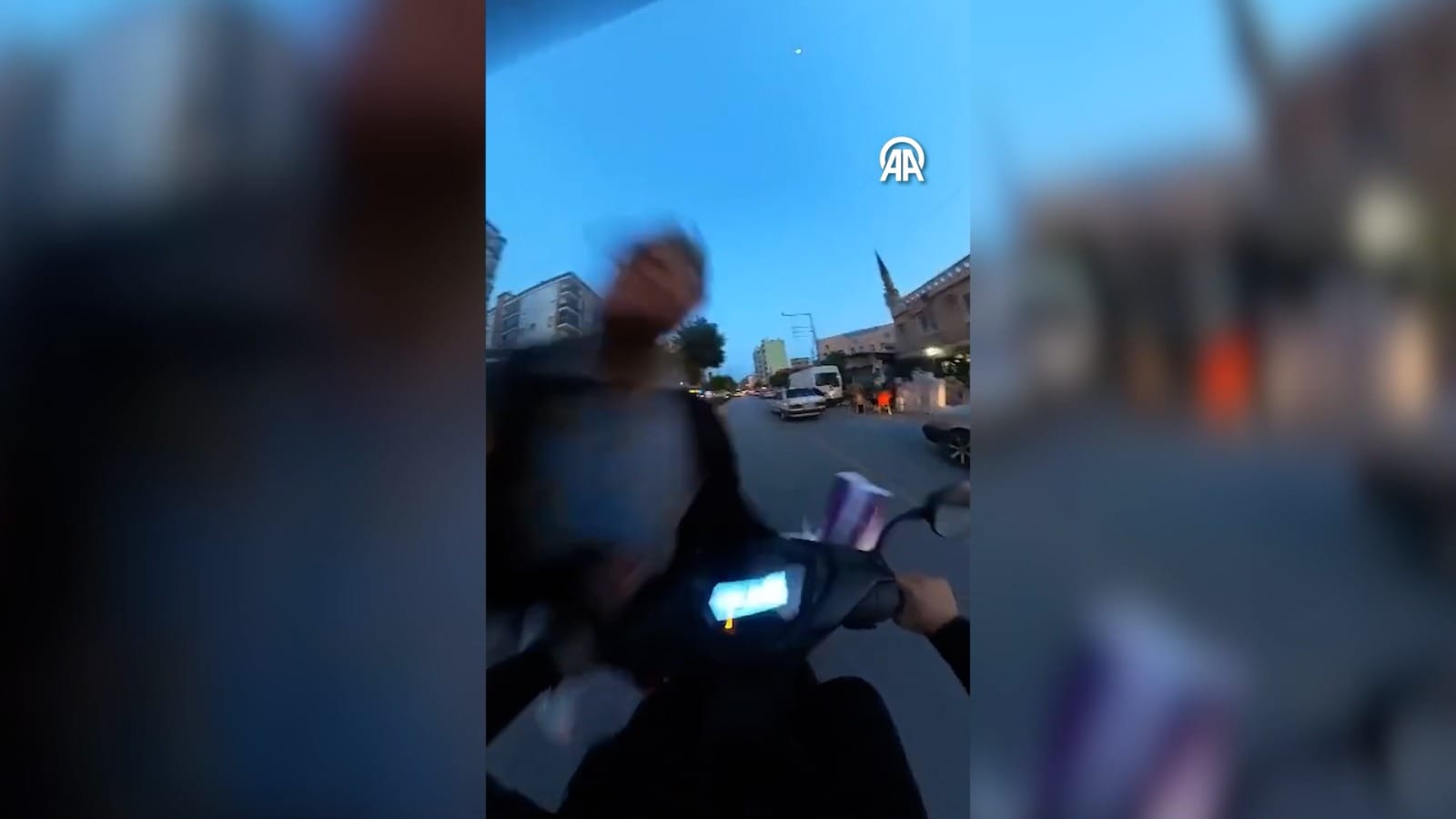 Kaza anı saniye saniye kuryenin kask kamerasınca kaydedildi. (AA)
