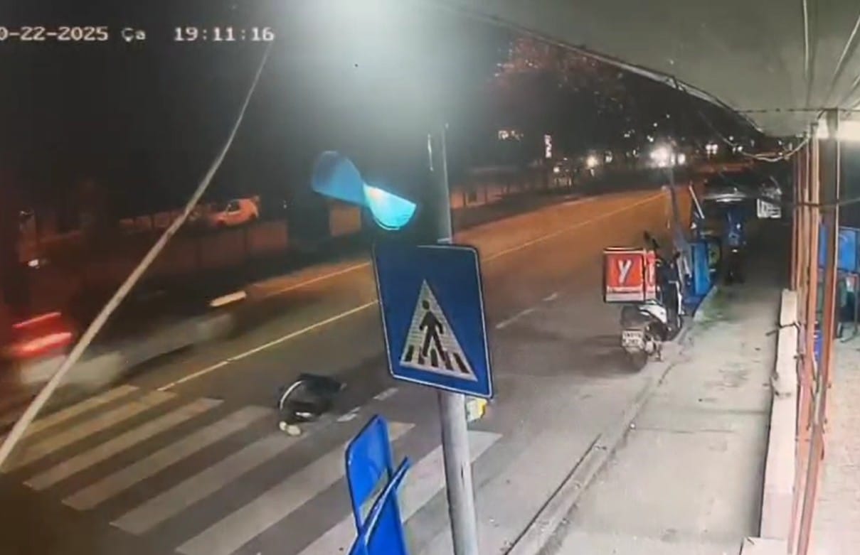 Bursa’nın Mudanya ilçesi Mudanya-Bursa yolunda, dün saat 19.00 sıralarında meydana gelen olayda, edinilen bilgilere göre motokurye C.Ç. (22) idaresindeki motosiklet, yaya geçidinden kırmızı ışıkta geçtiği iddia edilen A.K.'ye çarptı.