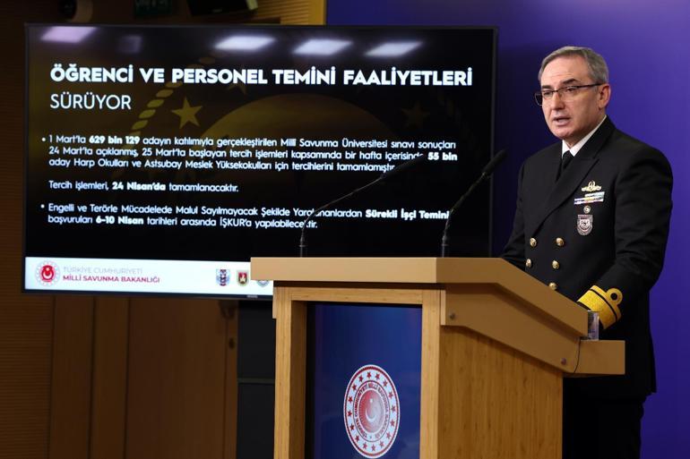 MSB Basın ve Halkla İlişkiler Müşaviri ve Bakanlık Sözcüsü Tuğamiral Zeki Aktürk, son 1 haftada yapılan faaliyetlere ilişkin bakanlıkta basın toplantısı düzenledi. Tuğamiral Aktürk, 1 Mart’ta 629 bin 129 adayın katılımıyla gerçekleştirilen Milli Savunma Üniversitesi sınavının sonuçlarının 24 Mart'ta açıklandığını hatırlatarak, "25 Mart’ta başlayan tercih işlemleri kapsamında bir hafta içerisinde 55 bin aday Harp Okulları ve Astsubay Meslek Yüksekokulları için tercihlerini tamamlamıştır. Tercih işlemleri, 24 Nisan’da tamamlanacak olup, şanlı ordumuzda görev yapmak isteyen gençlerimizi, Türk Silahlı Kuvvetlerimizin ihtiyaç duyduğu nitelikli insan gücünü, milli ve çağdaş eğitim anlayışıyla yetiştiren, savunma, güvenlik ve strateji alanlarında bilgi üreten ve uluslararası düzeyde saygın bir konuma sahip Milli Savunma Üniversitemize bekliyoruz" dedi.