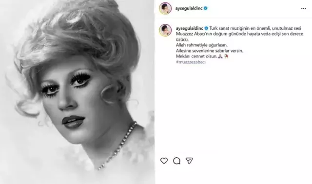 Ayşegül Aldinç: "Türk sanat müziğinin en önemli, unutulmaz sesi Muazzez Abacı'nın doğum gününde hayata veda edişi son derece üzücü. Allah rahmetiyle uğurlasın. Ailesine, sevenlerine sabırlar versin. Mekânı cennet olsun."