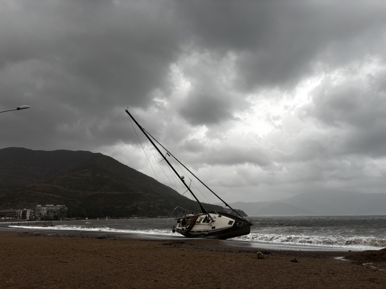 İçmeler ve Adaköy Mahallesi'nde iki yelkenli kıyıya sürüklenerek karada yan yattı.