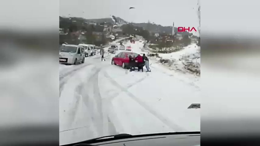 Yağış nedeniyle bazı araçlar yollarda ilerlemekte güçlük çekerken, belediye ve karayolları ekipleri herhangi bir olumsuzluk yaşanmaması için bölgede çalışma başlattı.
