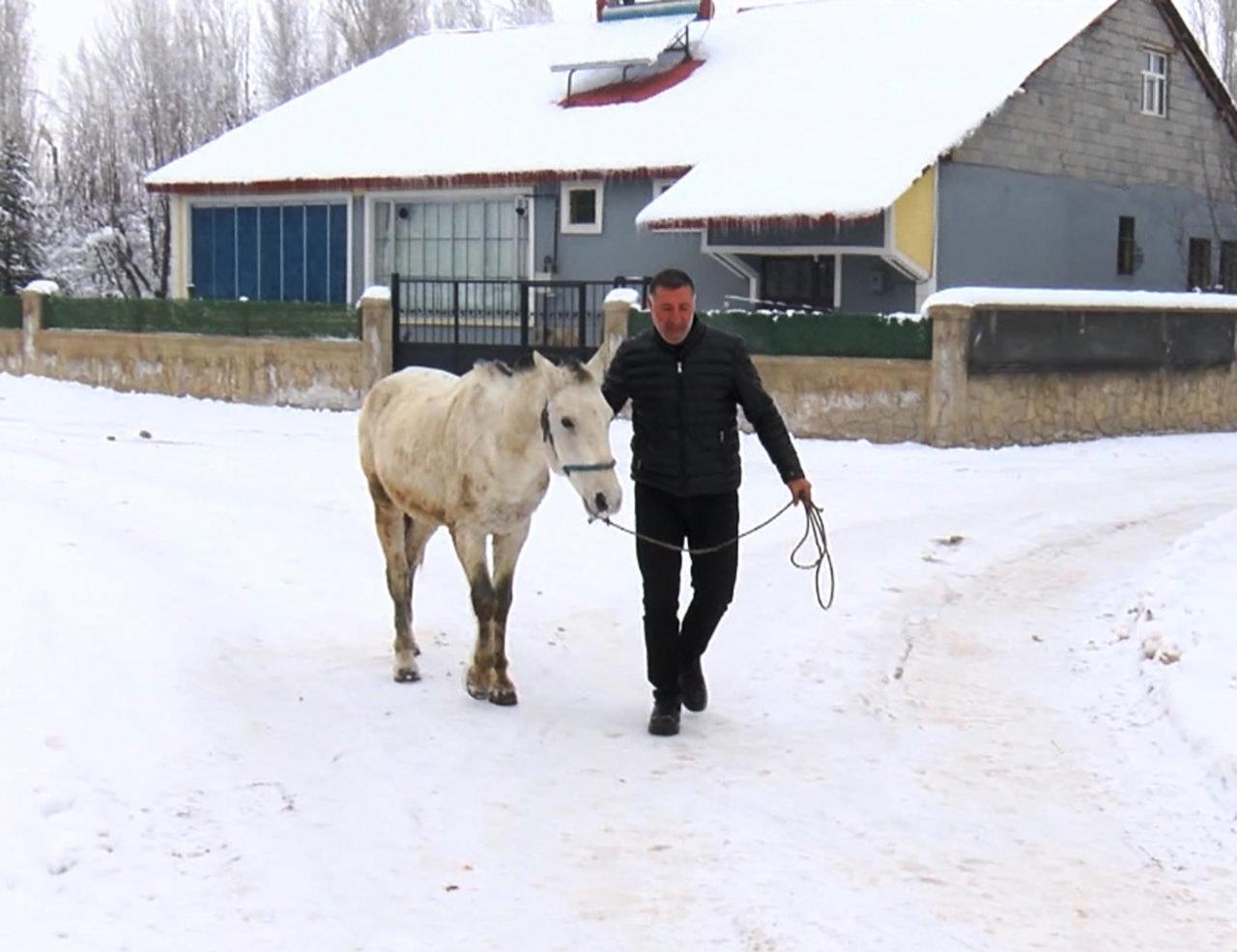 Kent merkezine bağlı Çöğürlü köyünde yaşayan yerel sanatçı Önder Elarslan, yaz aylarında çeşitli işlerde kullanılan ancak kış mevsiminde kaderine terk edilen sahipsiz at ve eşeklere sahip çıkıyor.