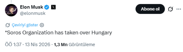Teknoloji milyarderi Elon Musk ise sonuçlara sert tepki gösterdi. Musk, X platformunda yaptığı paylaşımda, “Soros örgütü Macaristan’ı ele geçirdi” ifadelerini kullandı.