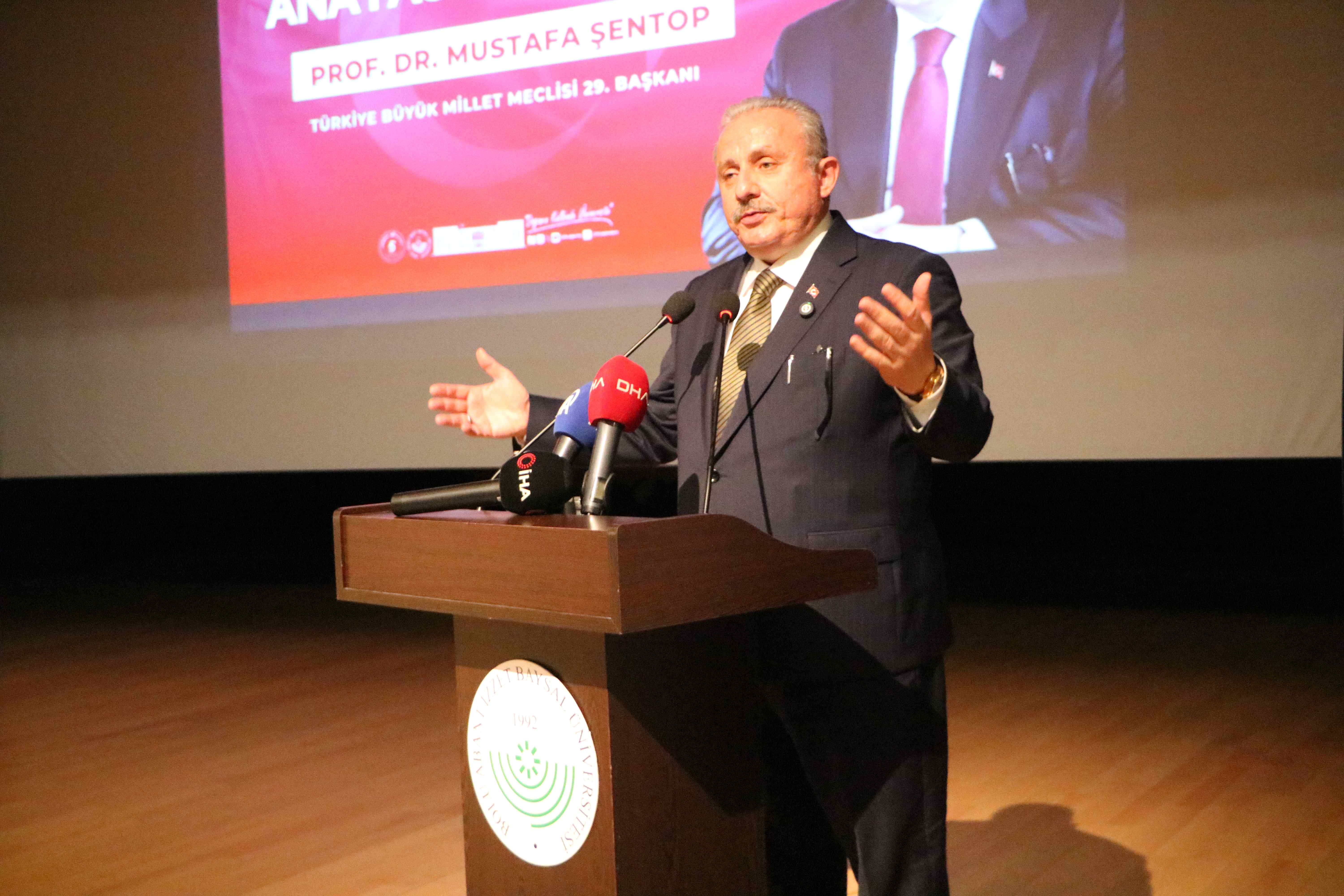 "ÜNİVERSİTEYİ BİTİRMİŞ OLMAK GİBİ BİR AŞAMANIN ÖNEMSENMESİ EVLENME YAŞINI YUKARIYA TAŞIYOR"Konferansta konuşan Şentop, nüfus artışında dramatik bir azalma olduğuna dikkat çekerek, bu yıl 'Aile Yılı' olarak ilan edildiğini hatırlattı. Şentop, "Ciddi bir sorunla karşı karşıyayız. Nüfus artış hızımızda dramatik bir azalma var oransal olarak. Bunun birçok sebebi konuşuluyor. Günümüz insanlarının, bilhassa gençlerimizin daha bireyselci bir hayat anlayışı içerisinde yetiştiği başta olmak üzere birçok konu söylenebilir. Ama bunlardan birisi de üniversite okumak ve üniversite mezuniyetinin esas alınması. Hayata atılmak için üniversiteyi bitirmiş olmak gibi bir aşamanın önemsenmesi evlenme yaşını yukarıya taşıyor. Bugün erkeklerde 28 yaşın üzerinde, kızlarımızda da 27 yaşın üzerinde evlenme yaşı ortalaması. Tabii bu hem evliliği geciktiriyor hem çocuk sahibi olmayı geciktiriyor ve belli bir sayıda az sayıda çocuk sahibi olmak gibi bir sonucu da ortaya çıkartıyor" dedi.