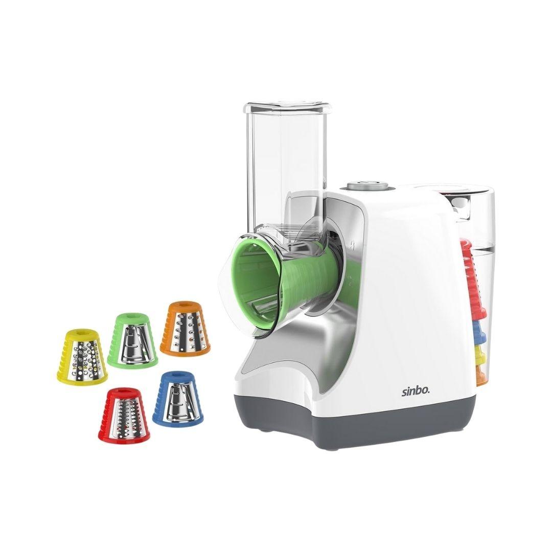 Mutfakta vakit geçirmeyi sevip de sebze doğramaktan yorulanlar için hayat kurtaran bir öneri! Sinbo’nun bu 5’i 1 arada cihazı; doğrama, dilimleme ve öğütme işlerini tek başına hallediyor. Güçlü motoru ve paslanmaz çelik bıçaklarıyla kesme tahtasıyla uğraşmadan malzemeler doğrudan tabağa veya tencereye dilimlenebiliyor. Üstelik tüm başlıkların cihaz üzerinde saklanabilmesi sayesinde mutfakta dağınıklığa da son veriyor.