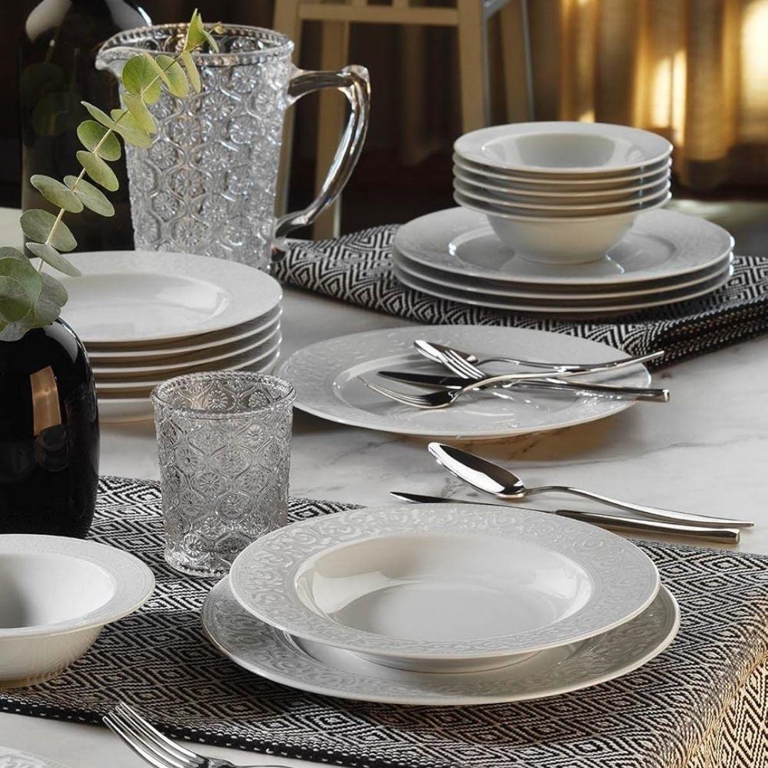 Klasik beyaz porselenin zarafetini taşıyan Kütahya Porselen Açelya seti, sevgilinizin hazırladığı o harika yemekler için mutfaktaki emeği taçlandıran dokunuş olacak. 6 kişilik bu set; servis tabağından çukur tabağa kadar tam teşekküllü bir sofra deneyimi sunuyor. En güzel yanı ise dekorsuz, saf tasarımı sayesinde modasının hiç geçmemesi ve yıllarca makinede yıkansa bile ilk günkü parlaklığını koruması.