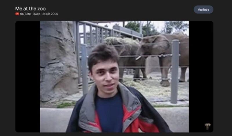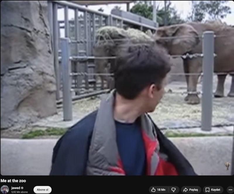 "BEN HAYVANAT BAHÇESİNDEYİM" VİDEOSU ARTIK LONDRA'DASan Diego Hayvanat Bahçesi'ndeki filleri konu alan "Me at the zoo" (Ben hayvanat bahçesindeyim) başlıklı 19 saniyelik klip, 23 Nisan 2005 tarihinde paylaşıldı.