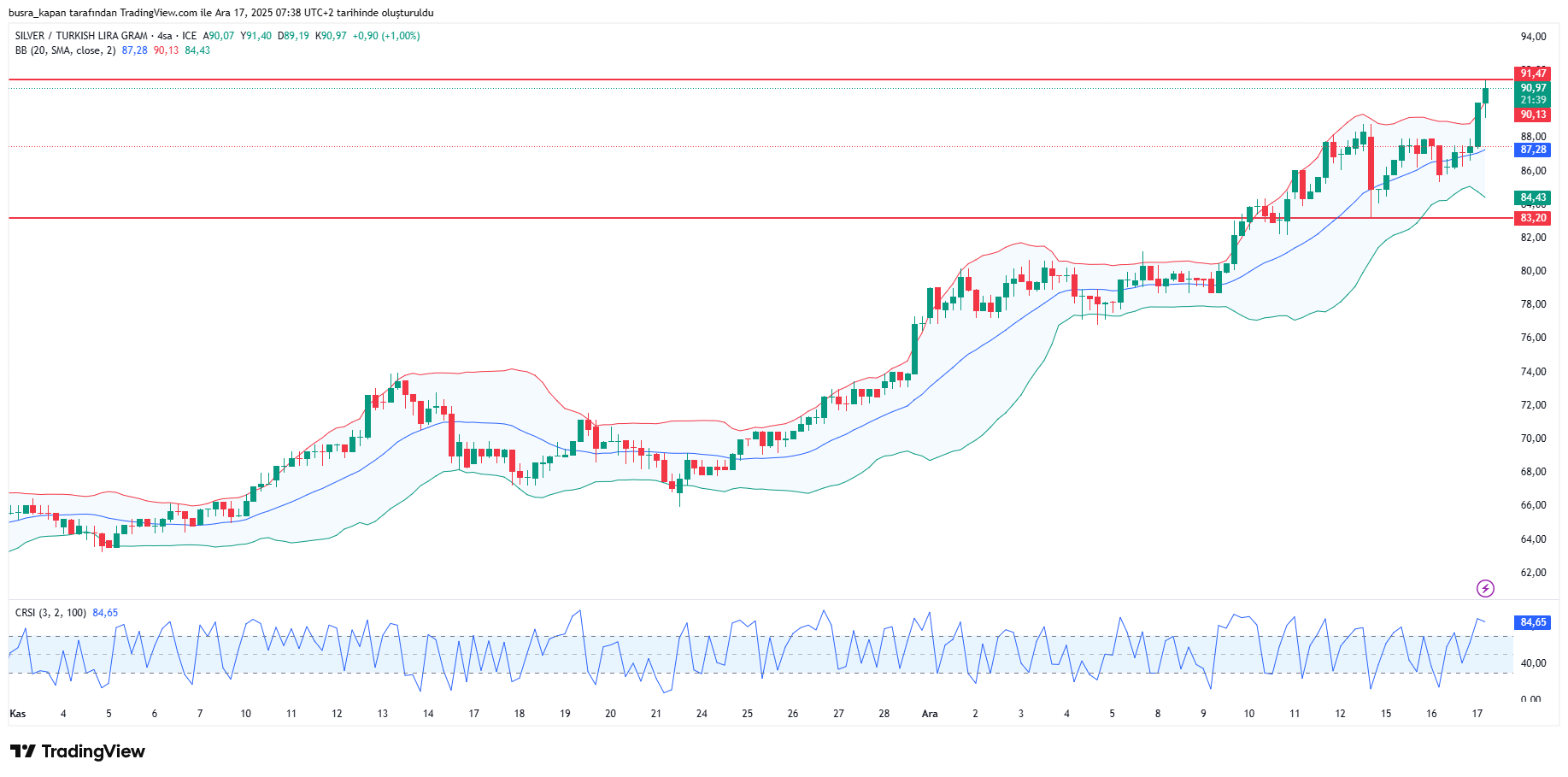 Dolar/TL kurundaki yükseliş ve ons gümüşteki rekorların etkisiyle, gram gümüş rekor tazeledi. Gram gümüş, 08.38'de 91,47 liraya kadar yükselerek rekor tazeledi.