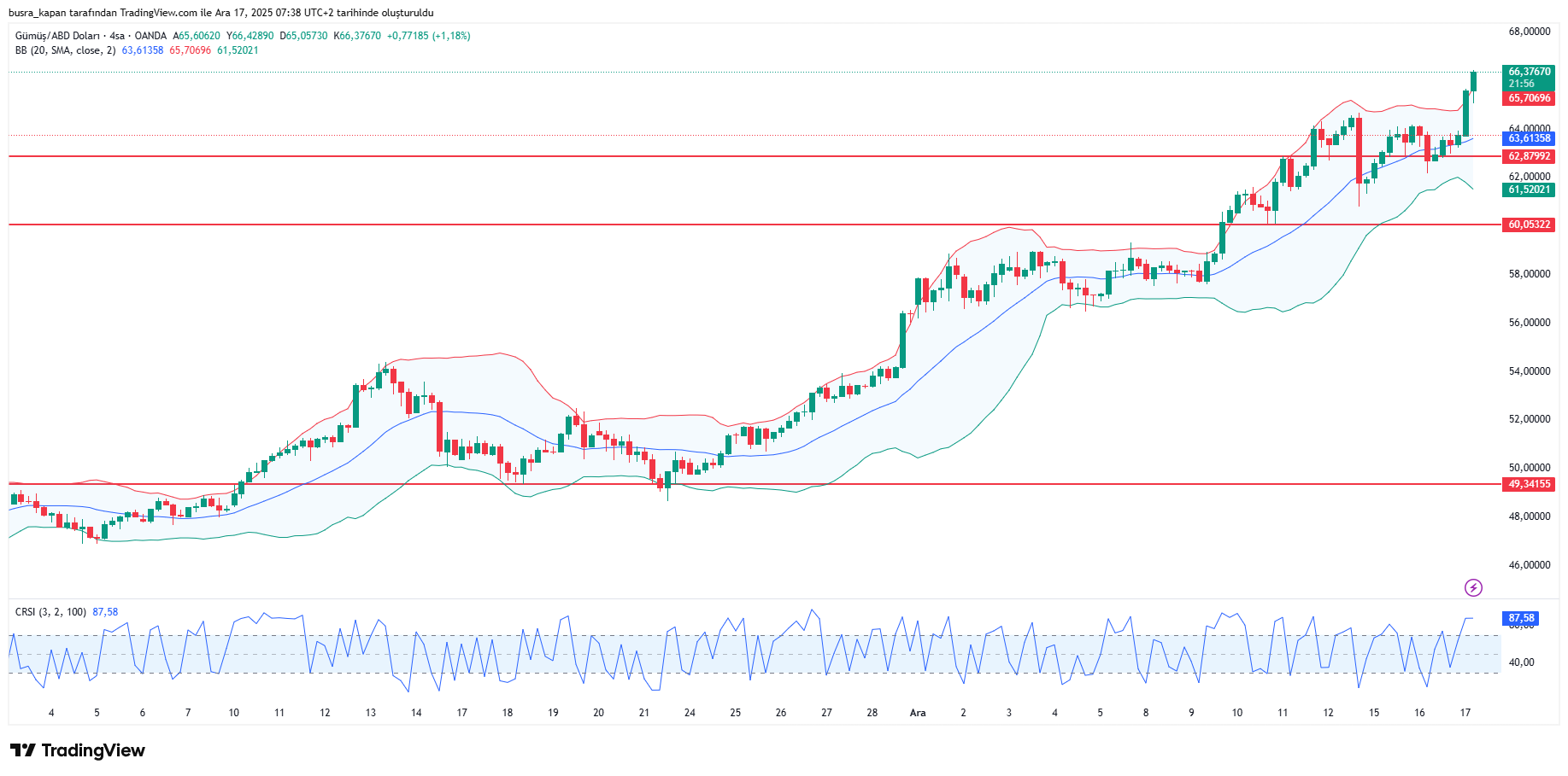 Yaşanan gelişmelerin etkisiyle, gümüş fiyatları yönünü yukarı çevirdi. Ons gümüş fiyatı yüzde 4 artışla 66 doları aştı. Gün içinde 66,35 doları gören gümüş, tüm zamanların en yüksek seviyesine ulaştı.